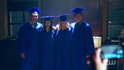 Betty and Veronica appeared alongside Archie and Jughead in one of Fred Andrews' hallucinatory visions following the shooting at Pop's. Betty, Veronica, Archie, and Jughead were in their caps and gowns, prepared for graduation. In the student lounge, they stood collectively, waiting for Fred to take a photo of them. Next to Fred, was Archie's mother, Mary Andrews. Fred commented that he didn't think he would live to see the day, to which Betty replied that he didn't, meaning he didn't survive the attack at Pop's. Before Fred could respond, the shooter appeared at the scene. As he entered the lounge with his weapon drawn, Fred yelled for everyone to go down, before a gunshot was heard.